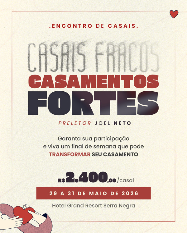 A conferência Casais Fracos, Casamentos Fortes nasce da convicção de que a verdadeira força do casamento não está na capacidade humana, mas na pessoa, na graça e no poder de Jesus. Casais que reconhecem suas limitações diante de Deus são justamente aqueles que constroem relacionamentos mais firmes, saudáveis e duradouros.